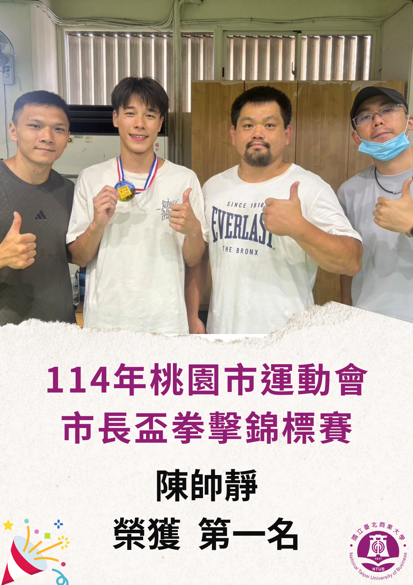 【賀】本校陳帥靜同學 參加114年桃園市運動會 市長盃拳擊錦標賽 榮獲第一名