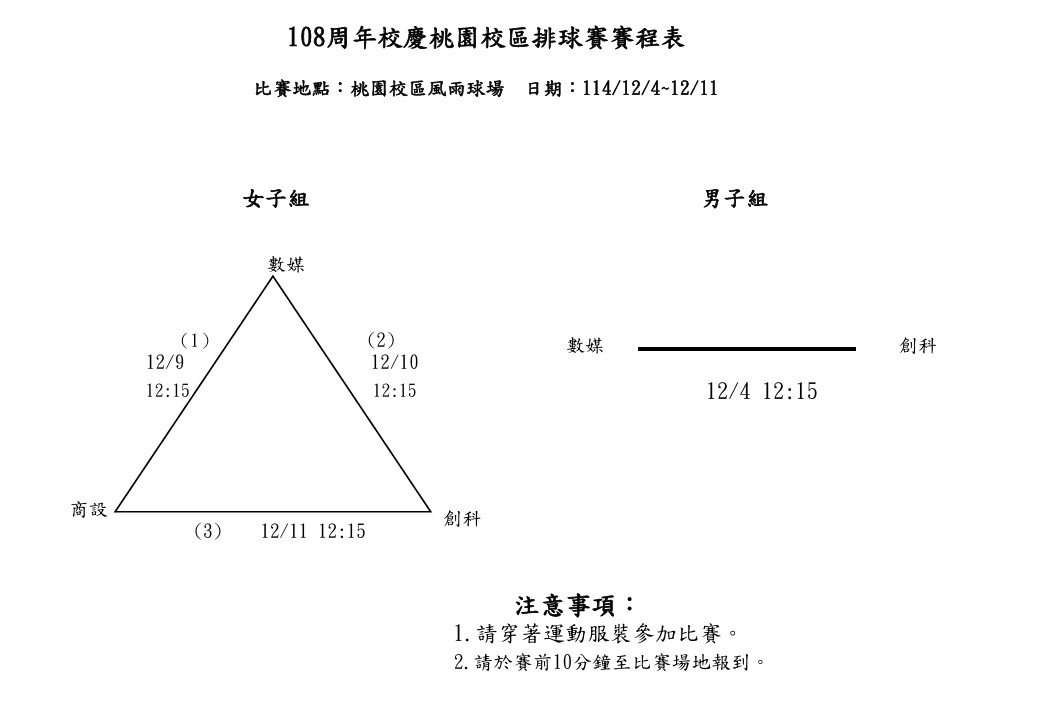 【公告】桃園校區-108週年校慶學生排球賽 賽程公告