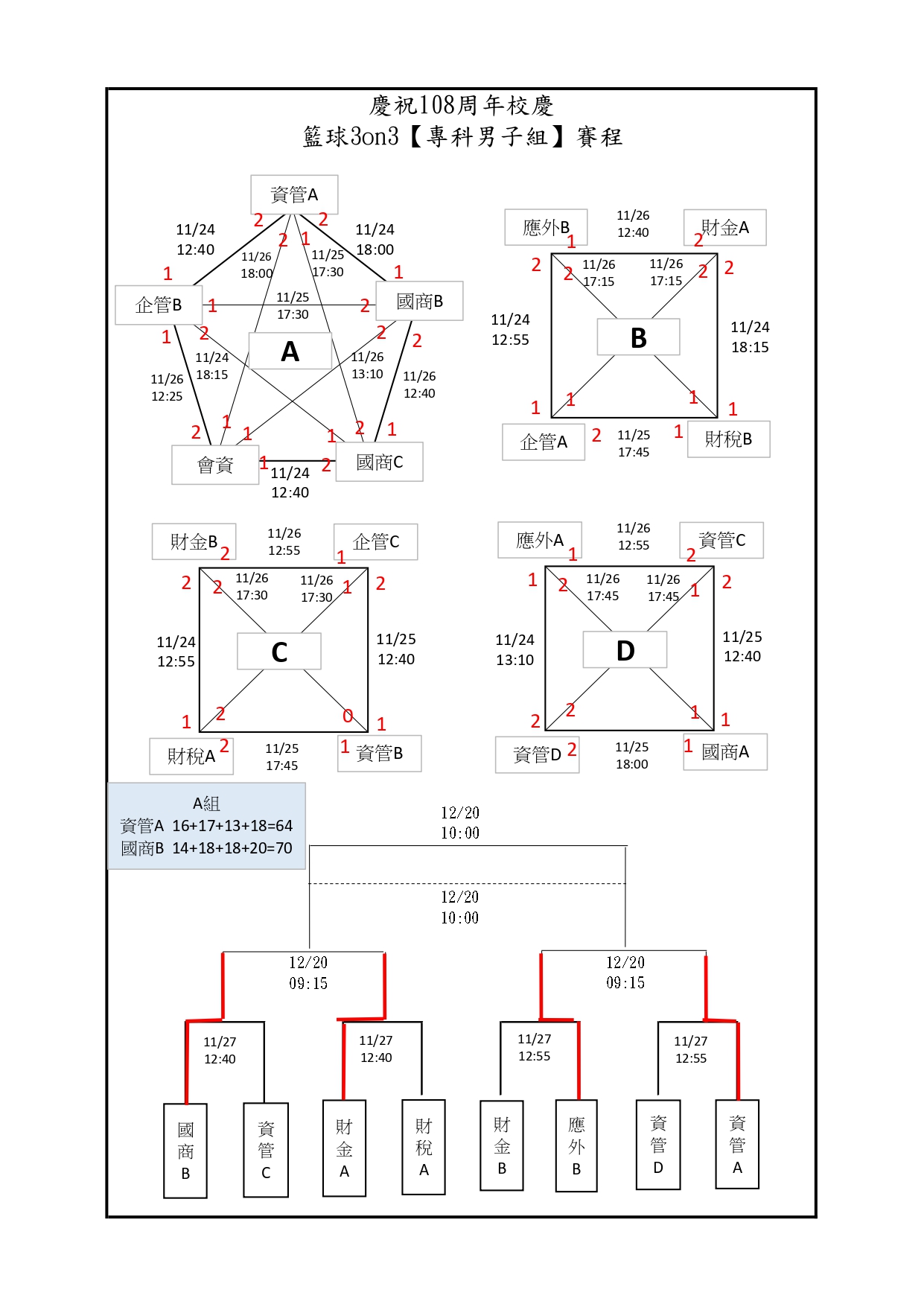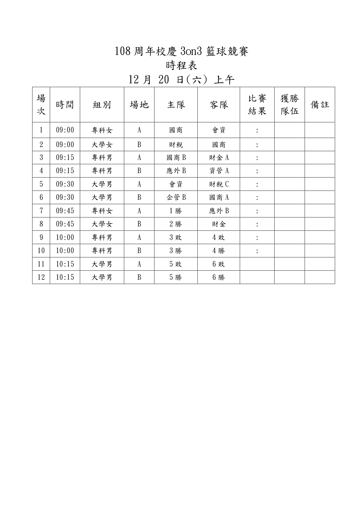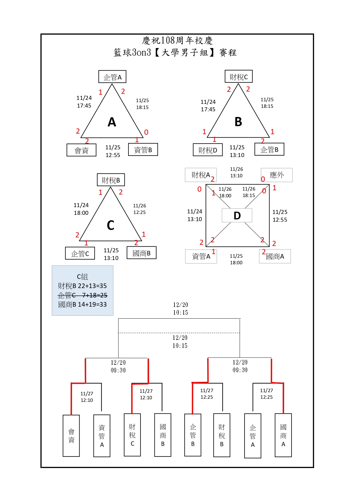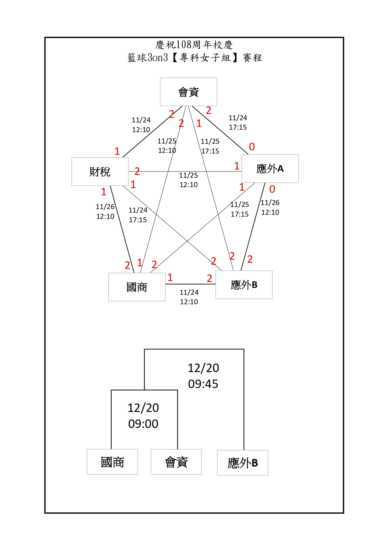 【公告】台北校區-108週年校慶學生三對三籃球賽 決賽賽程公告
