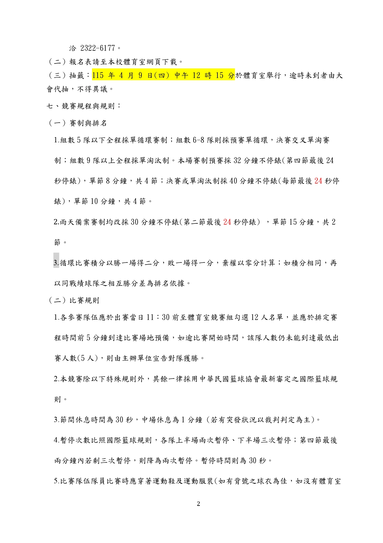 【公告】114學年度學生籃球爭霸賽競賽規程公告及辦理報名作業