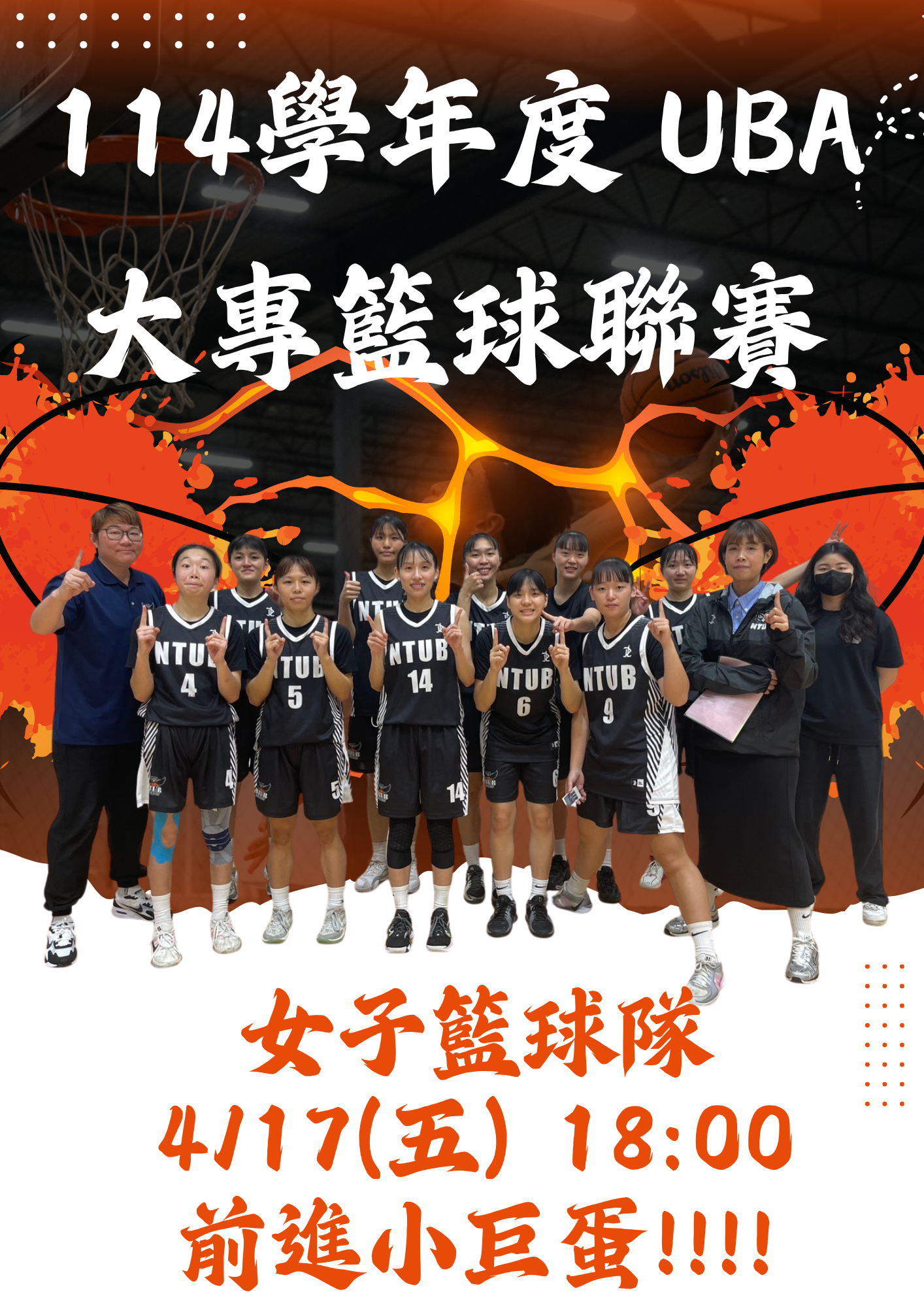 【公告】114學年度 UBA 大專籃球聯賽 女子籃球隊前進小巨蛋 歡迎蒞臨現場加油