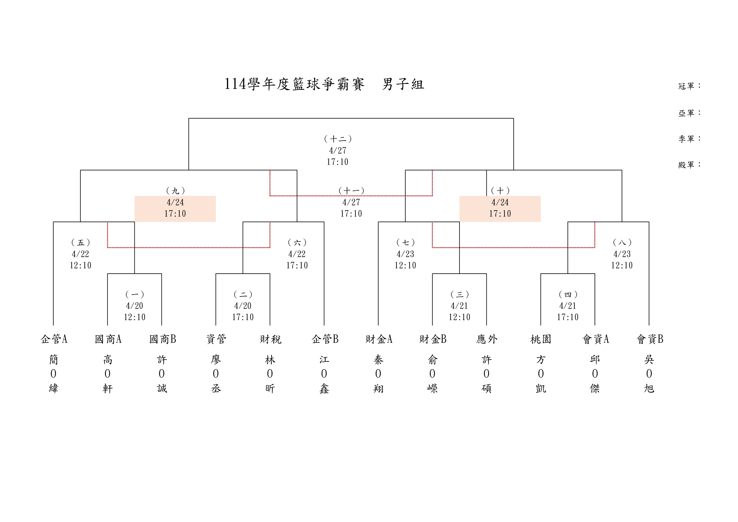 國立臺北商業大學114學年度籃球爭霸賽賽程公告